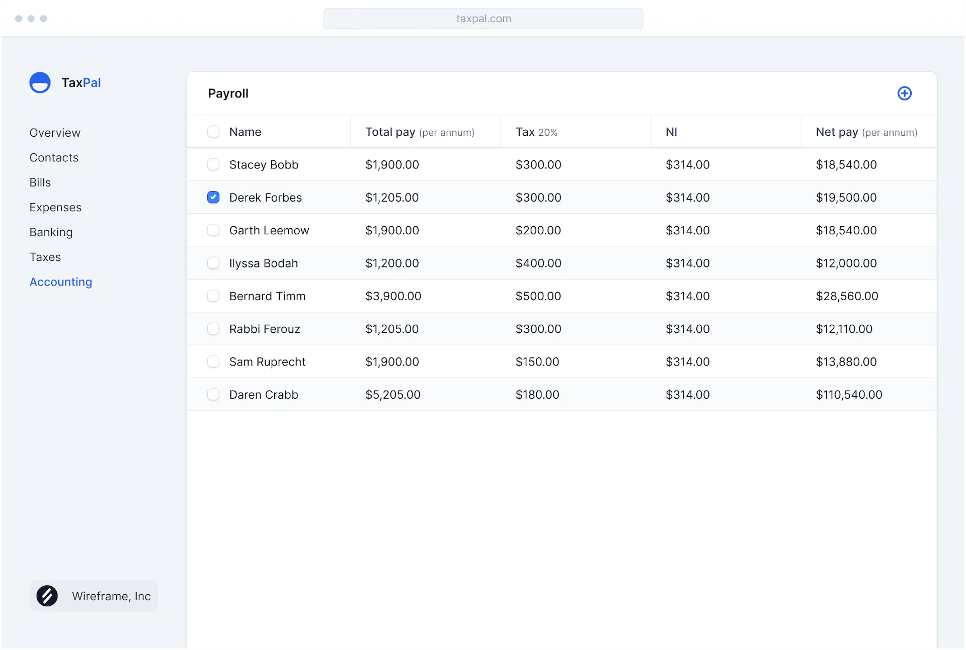Keep track of everyone's salaries and whether or not they've been paid. Direct deposit not supported.
